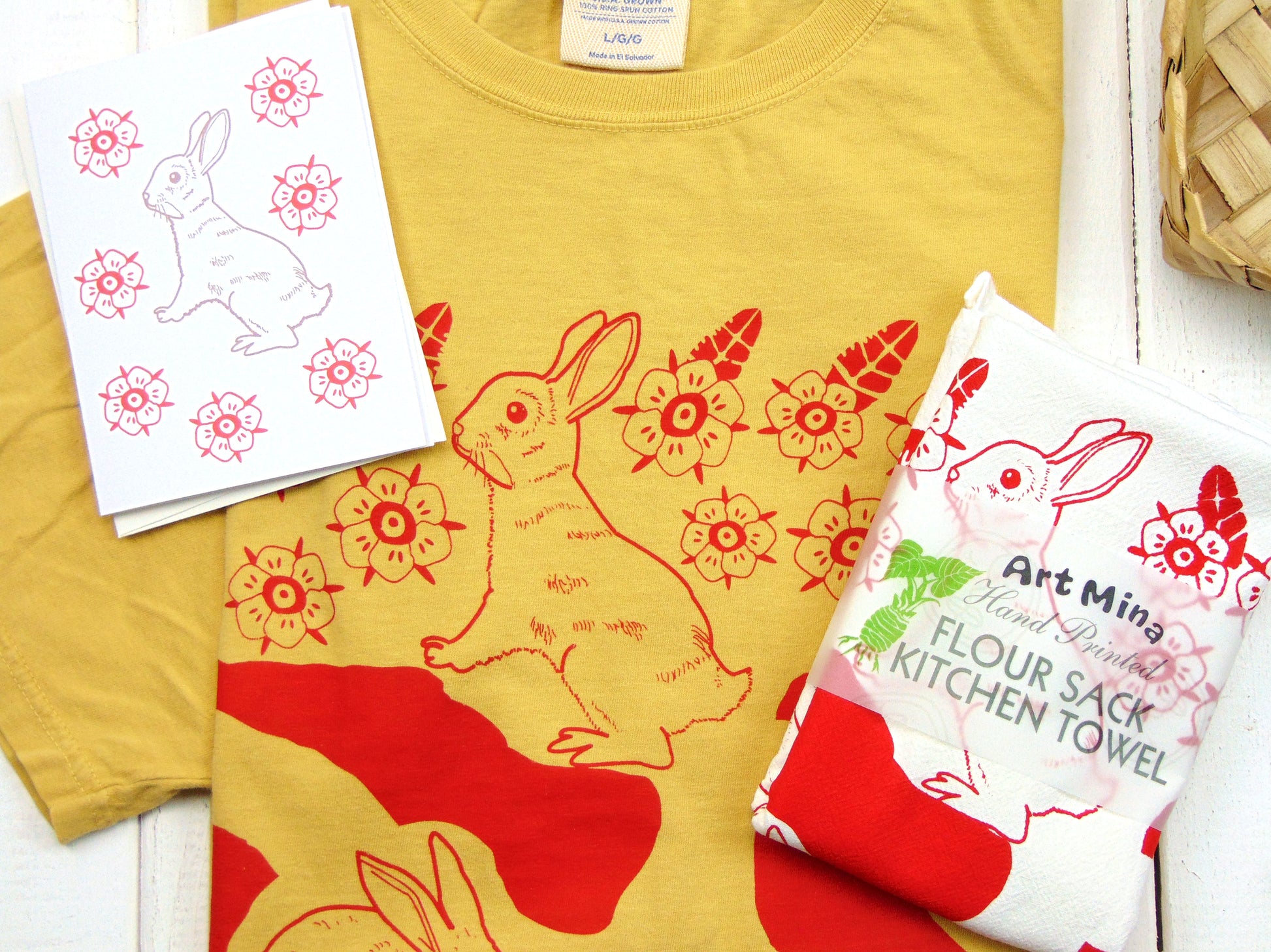 Thanks for taking a look at our Art Mina shop, "Art Mina Cafe" on Etsy! Please feel free to contact us if you have a question. We hope this hand-screen printed bunny gift set brings warmth, charm, and a smile to someone you love.