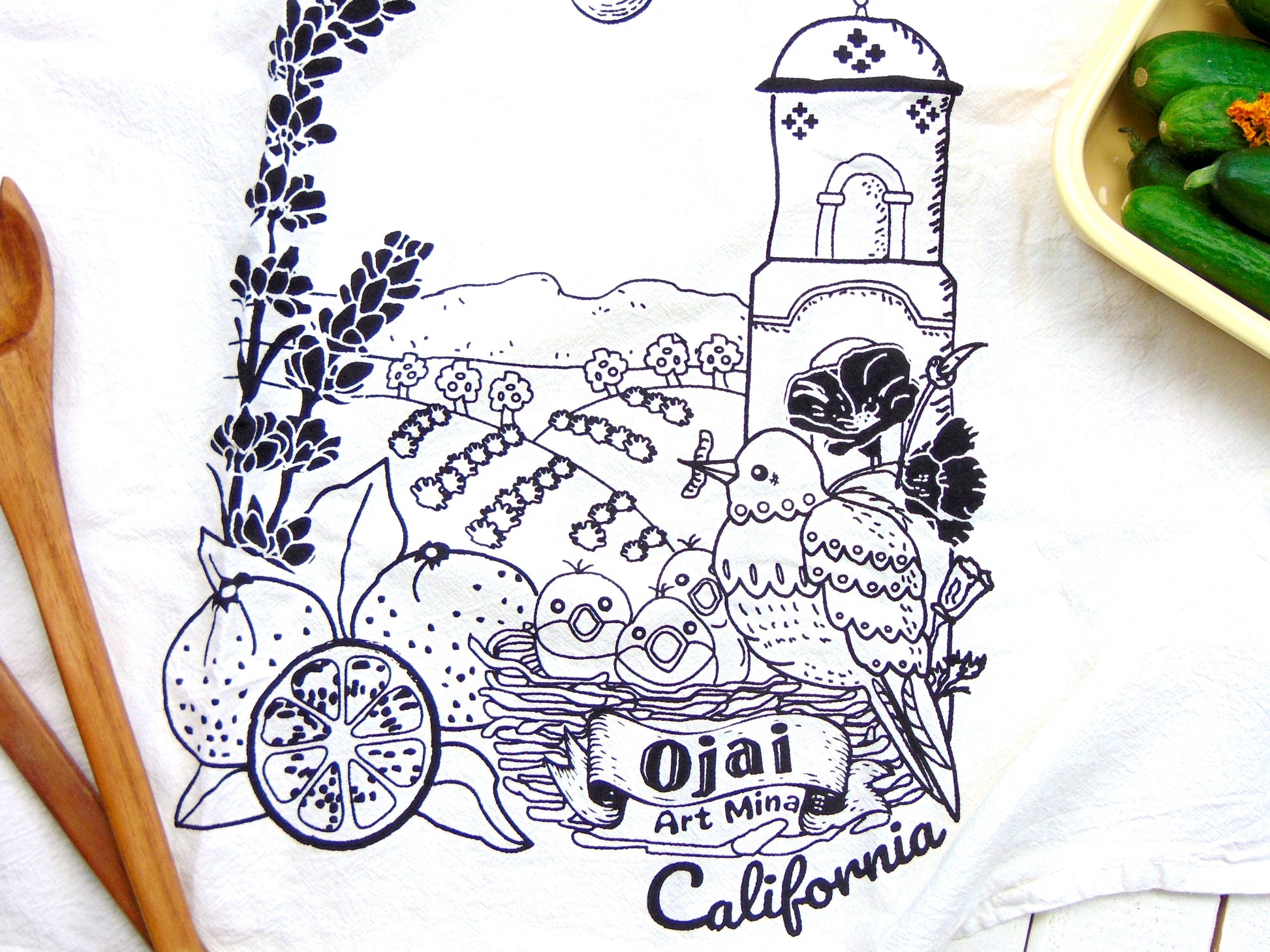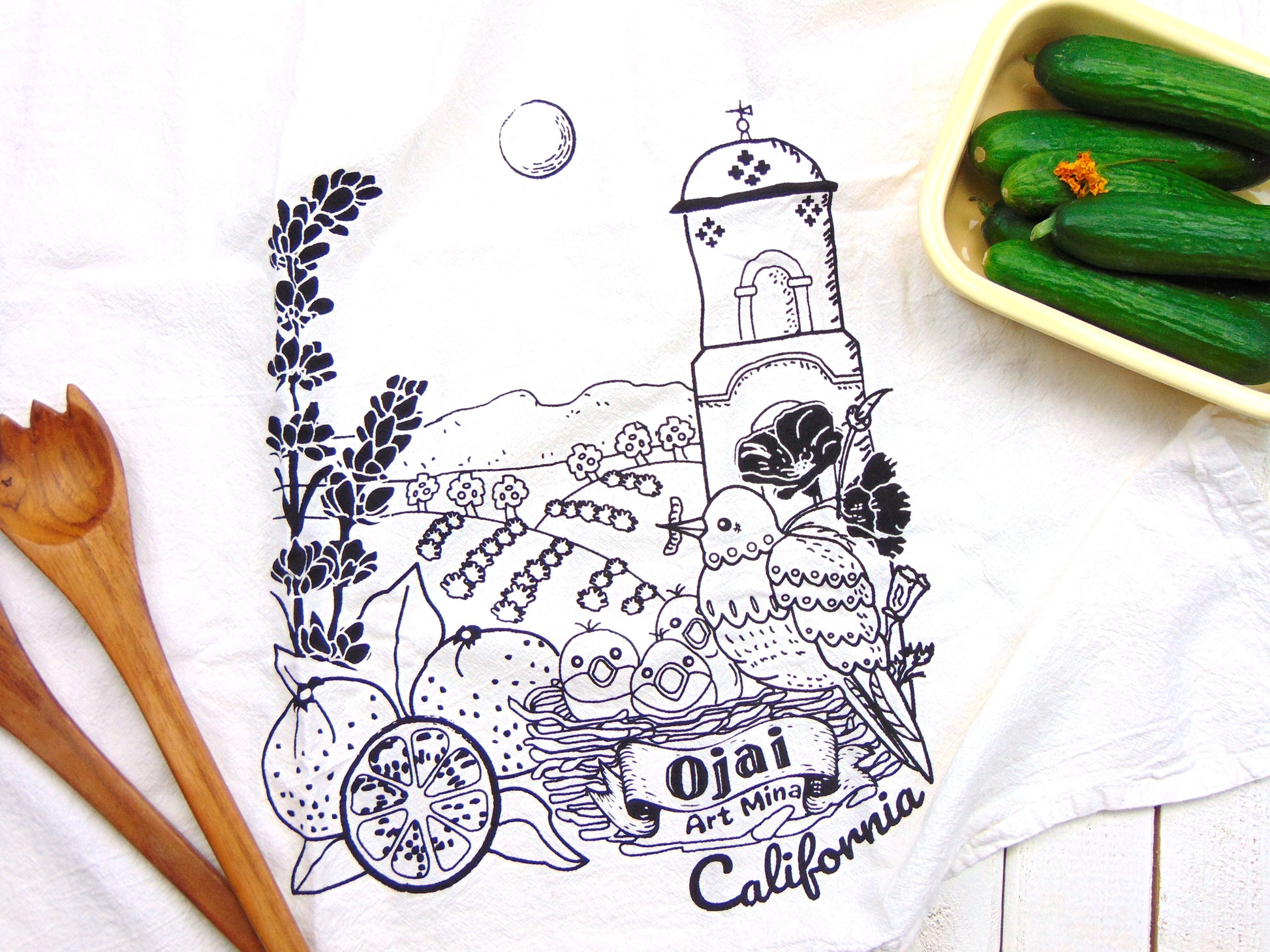 Flour Sack Kitchen Tea Towel "Ojai California 'Me! Me!'"