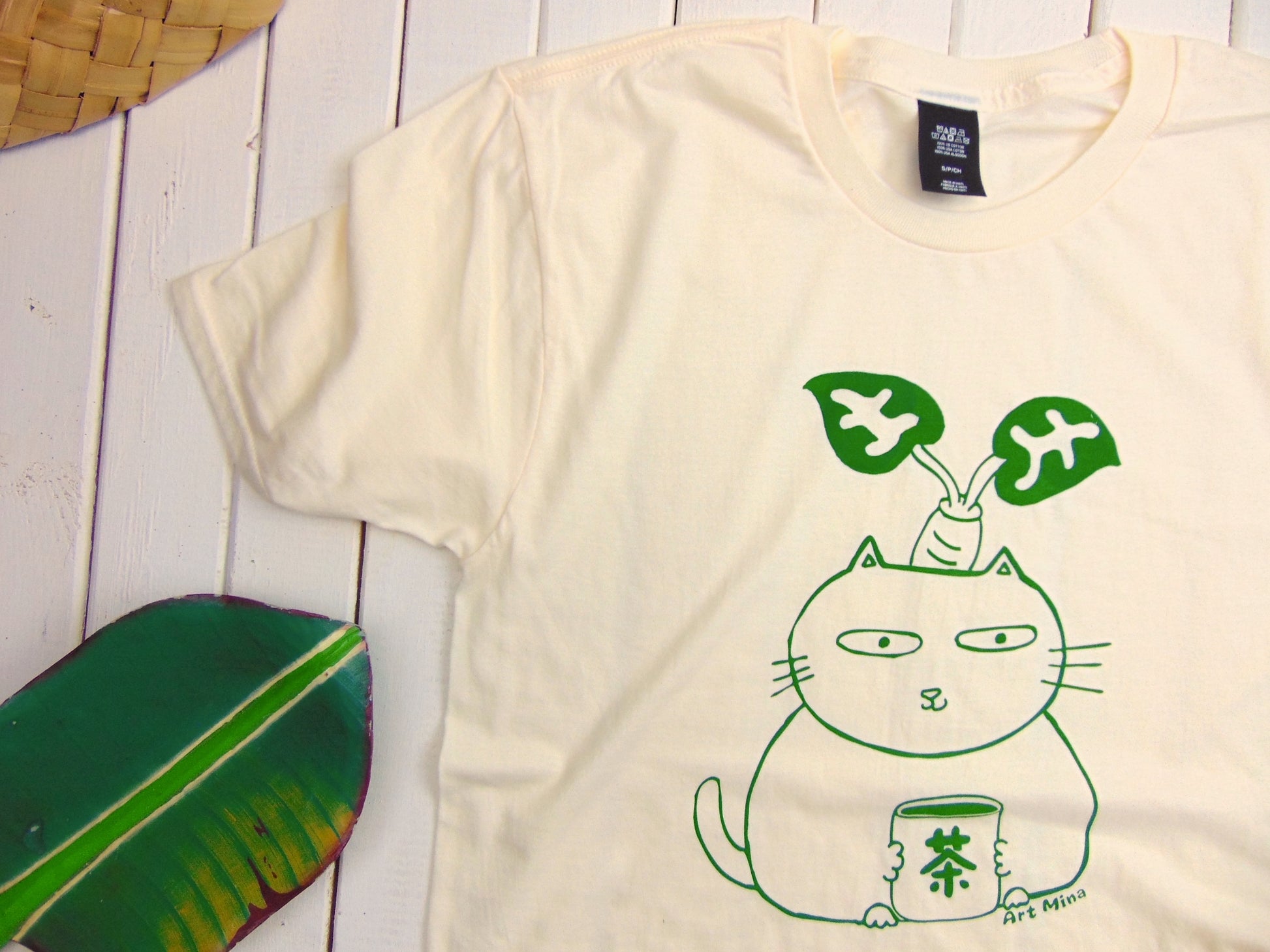 A cat that grows taro plants from its head and drinks Japanese tea will soothe you! The charm of our "Ocha Neko" Unisex T-shirt features a delightful Green Tea Cat design.